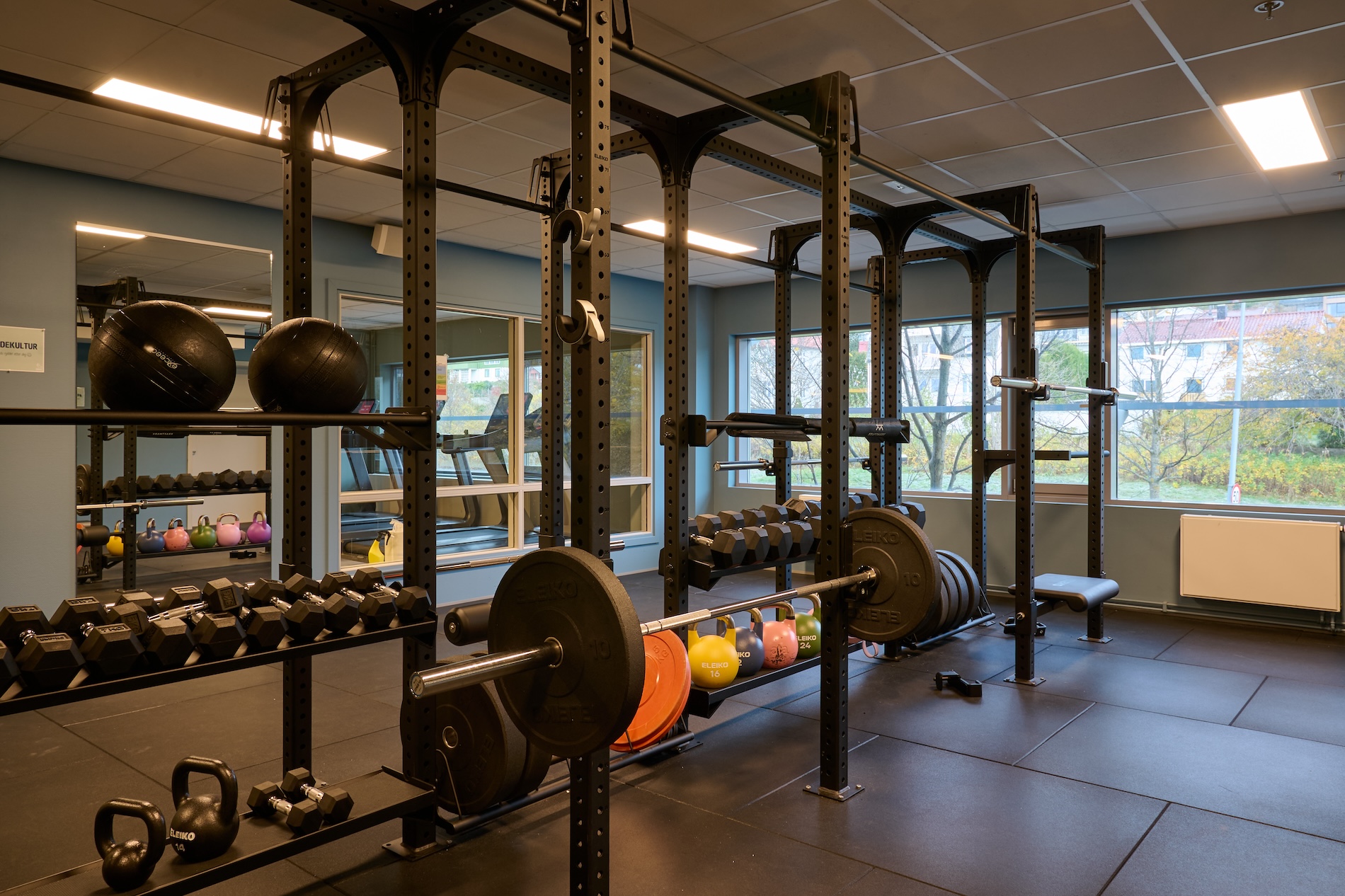 Det tidligere «møllerommet» har fått nytt liv som et topp moderne funksjonelt styrkerom. Her finner du splitter nytt kvalitetsutstyr fra ELEIKO, med hele 6 løftestasjoner perfekt til alt fra baseløft og frivekter til funksjonelle øvelser og sirkeltrening. Her har du hip-thrust stasjon, Dips-stenger, feste for landmine-øvelser, integrert smith-maskin, samt vektskiver, kettlebells og manualer lett tilgjengelig.